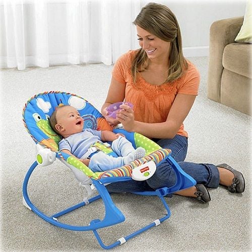 Ở giai đoạn này, bé chủ yếu ăn ngủ để phát triển, thường hay quấy khóc, giật mình. Xích đu rung là lựa chọn rất phù hợp, giúp bé dễ ngủ và giảm gánh nặng cho mẹ.