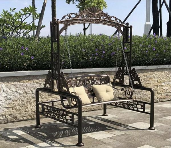 Với sự kết hợp giữa chất liệu nhôm đúc bền bỉ và thiết kế tinh xảo, xích đu trở thành một tác phẩm nghệ thuật, làm cho không gian xanh của biệt thự trở nên đặc biệt và ấn tượng. Họa tiết hoa văn và chi tiết tinh tế trên xích đu nhôm đúc tạo điểm nhấn đáng chú ý, làm nổi bật nét quý phái của sân vườn.