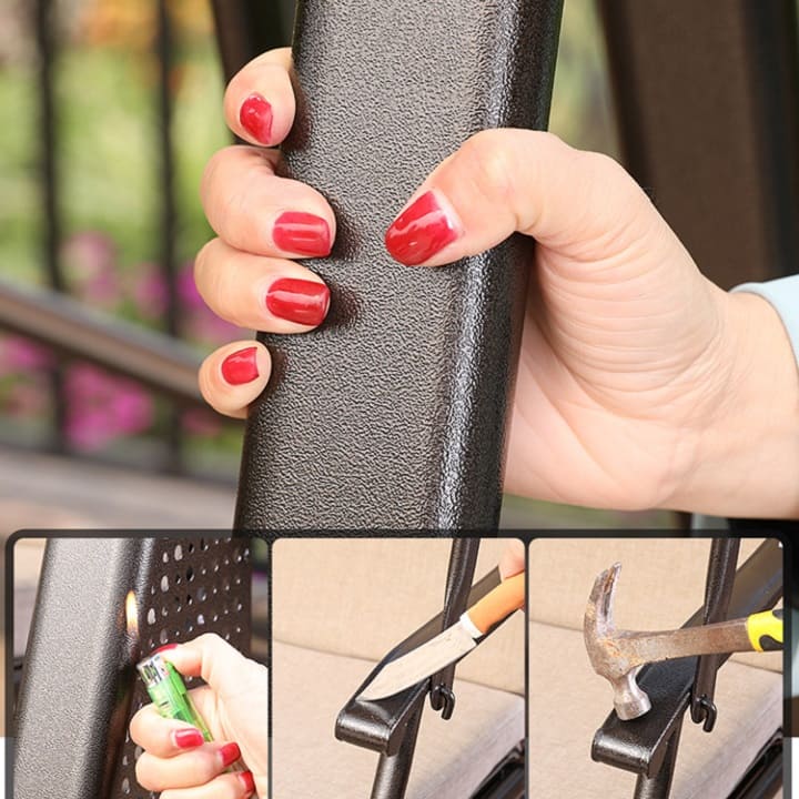 Xích đu sân vườn phần viền của khung được bo tròn, phun sơn tĩnh điện cao cấp giúp bảo vệ sản phẩm trong điều kiện ngoài trời thời tiết thay đổi thất thường, hạn chế khả năng oxy hóa làm giảm tuổi thọ sử dụng.