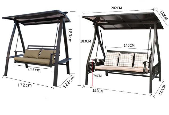 Mẫu xích đu sân vườn ngoài vẻ đẹp đến từ kiểu dáng, thiết kế, sản phẩm còn có thể phục vụ nhiều nhu cầu khác nhau trong thời gian bạn nghỉ ngơi, thư giãn, Phần ghế được thiết kế rộng rãi với 2 chỗ ngồi và 3 chỗ ngồi theo tiêu chẩn thoải mãi.